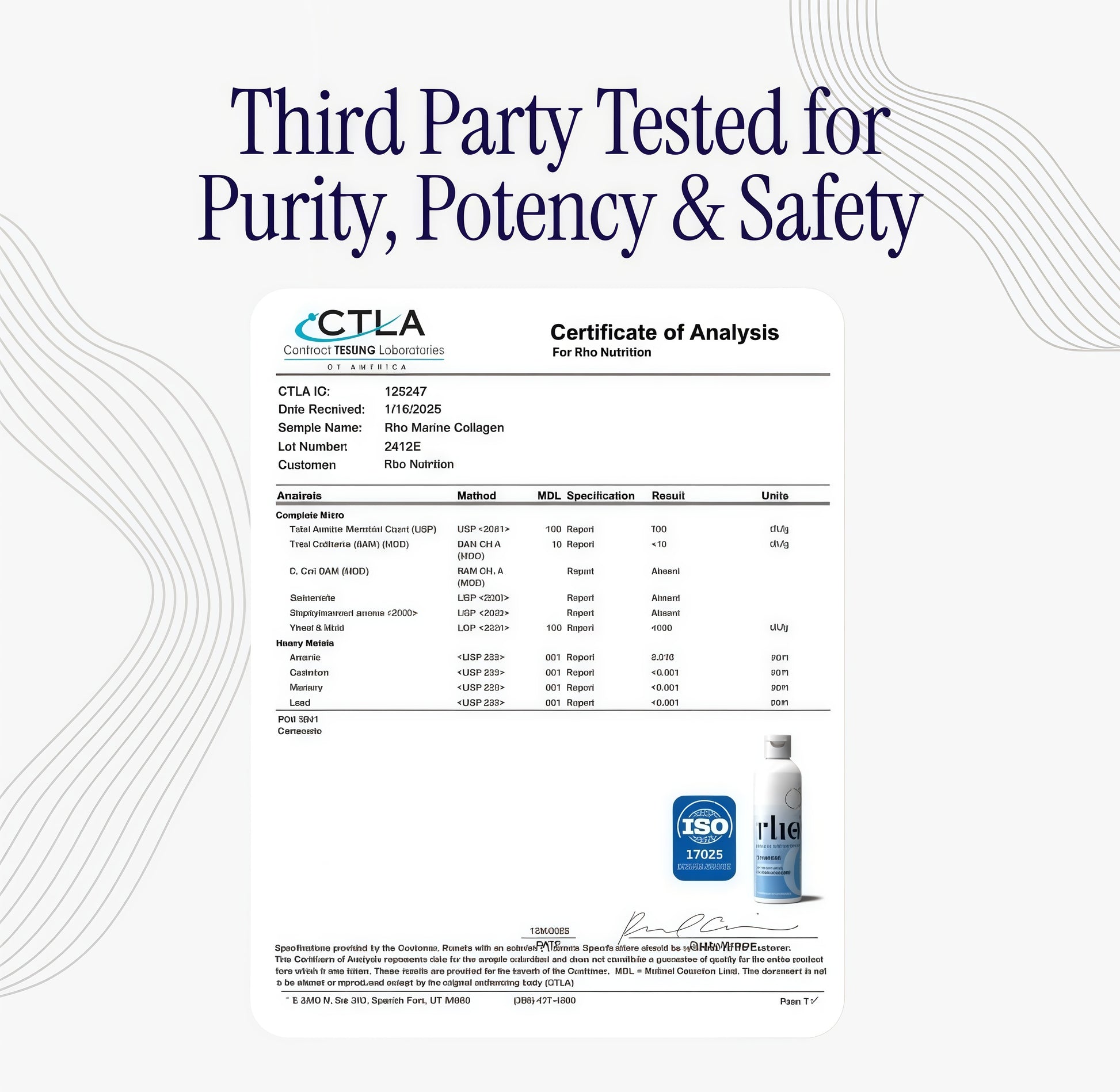 Yes, at Rho Nutrition every single product undergoes a rigorous quality control process ensuring we are settingthe industry standard for quality and safety. Every step of the manufacturing process is carefully documented,tested and done in a cGMP, FDA registered and allergen free facility. Every product undergoes third partytesting for purity, safety, and potency.
