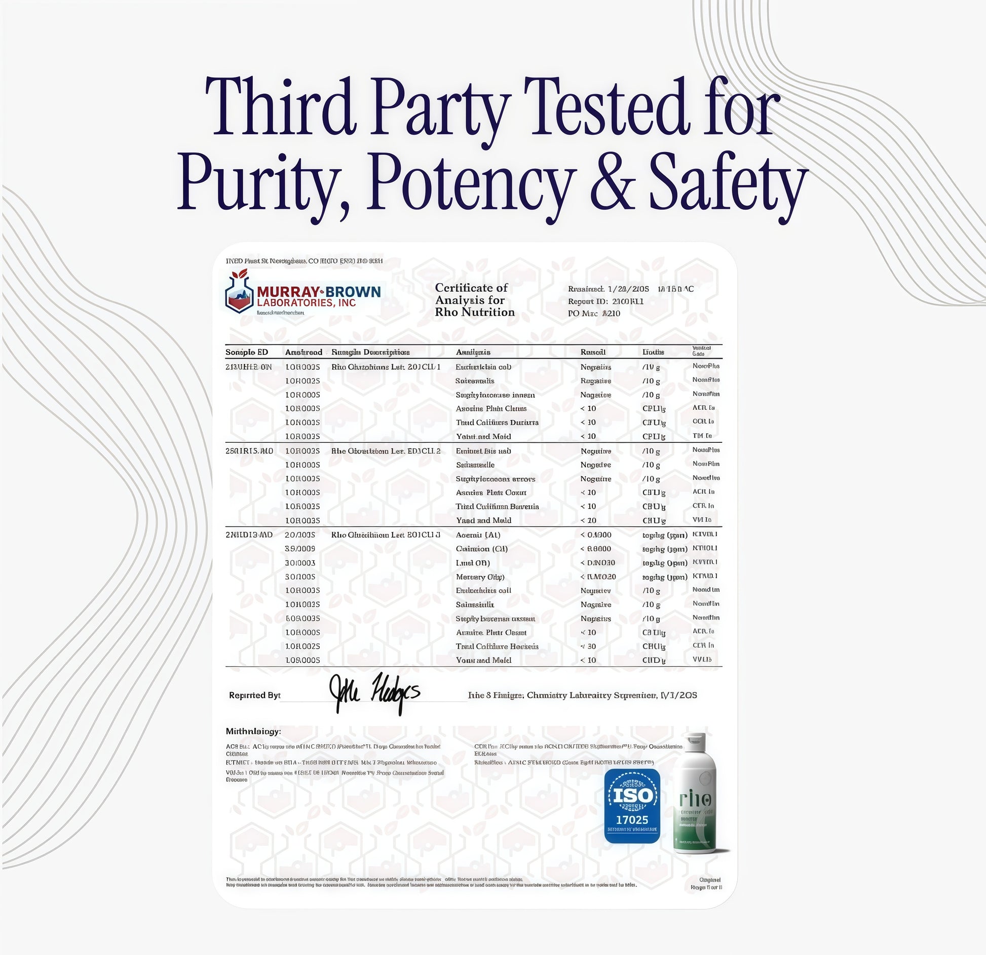 Yes, at Rho Nutrition every single product undergoes a rigorous quality control process ensuring we are settingthe industry standard for quality and safety. Every step of the manufacturing process is carefully documented,tested and done in a cGMP, FDA registered and allergen free facility. Every product undergoes third partytesting for purity, safety, and potency.